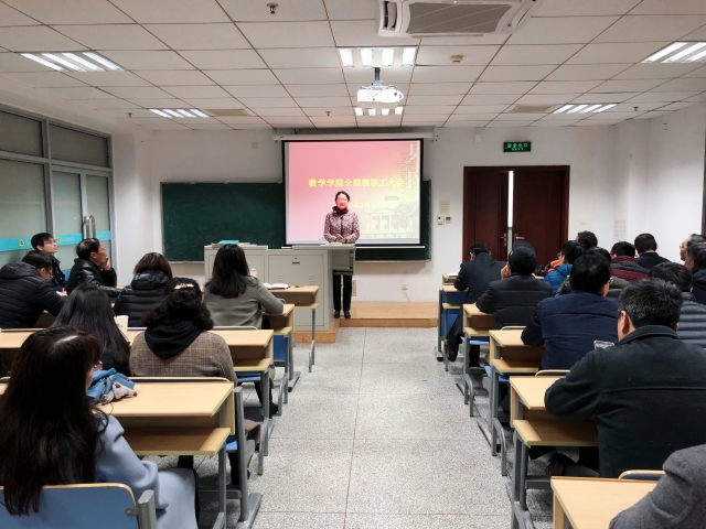 3月6日,数学学院在九龙湖校区召开全院教职工大会,传达学校中层干部会议精神,部署新学期工作。会议由吴映红书记主持,全院教职工参加会议。