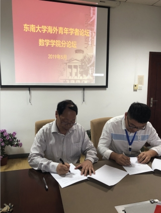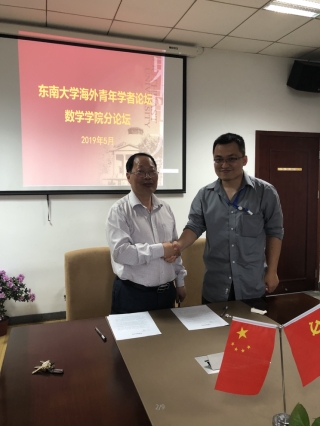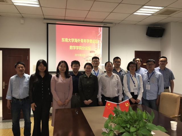 5月14日下午,数学学院在九龙湖校区成功举办“东南大学2019年海外青年学者分论坛”,数学学院全体领导班子成员、各系主任和五位青年学者出席了论坛,论坛由党委书记吴映红主持。