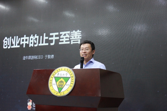 随后于当天晚上六点半,于敦德先生前往人文讲座报告厅为同学们带来了主题为“创业中的止于至善”的精彩讲座。本次讲座由共青团东南大学委员会,东南大学数学学院,理科试验班主办,由东南大学文化素质教育中心,数学学院团委,物理学院团委承办。