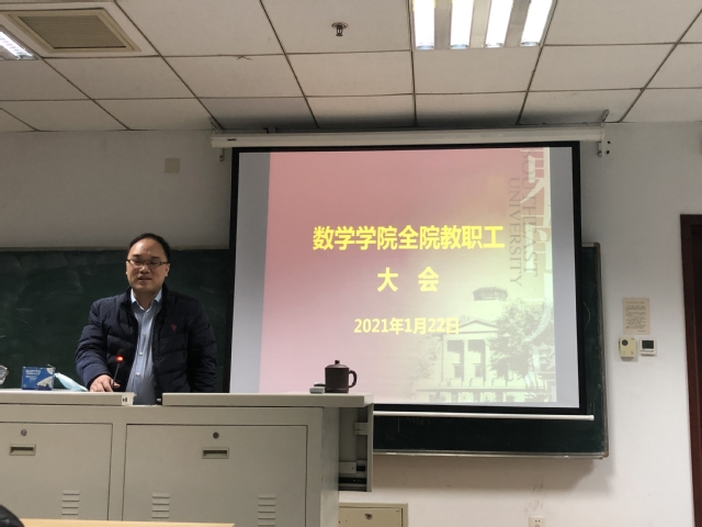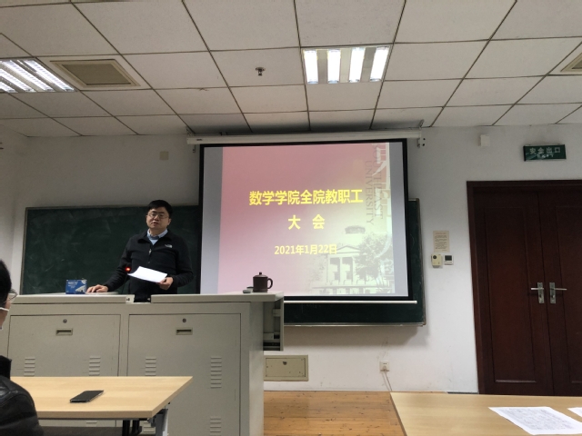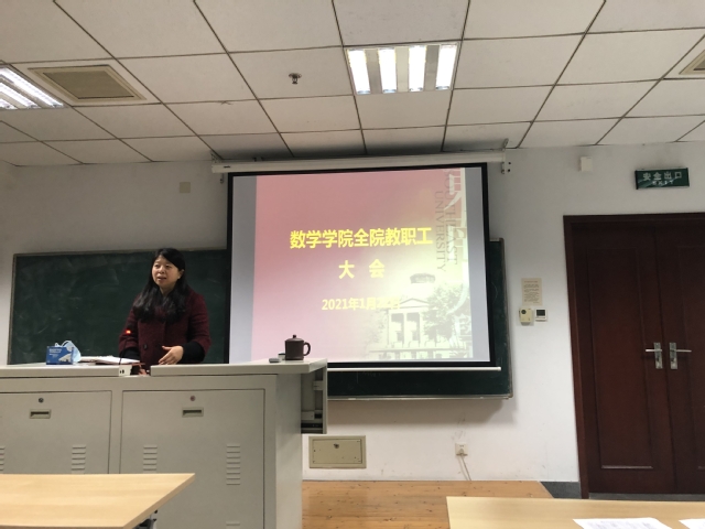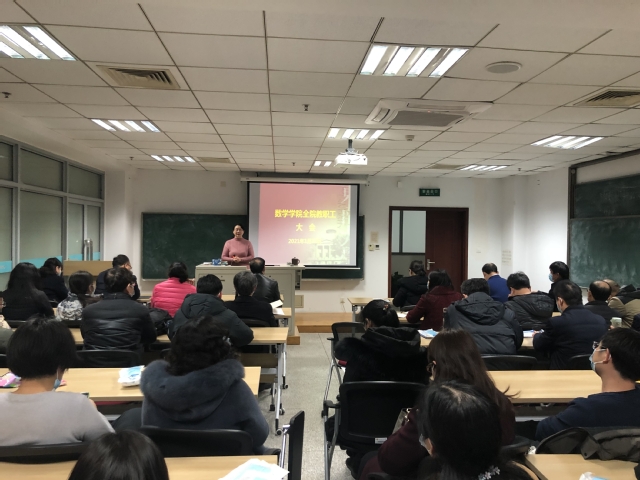 1月22日,数学学院召开全院教职工大会,会议由吴映红书记主持,全院教职工参加了会议。