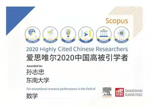 日前,爱思唯尔(elsevier)发布的2020年“中国高被引学者”榜单中,数学学院曹进德教授、虞文武教授、卢剑权教授、温广辉教授、梁金玲教授、孙志忠教授6人入选,均为数学学科方向。