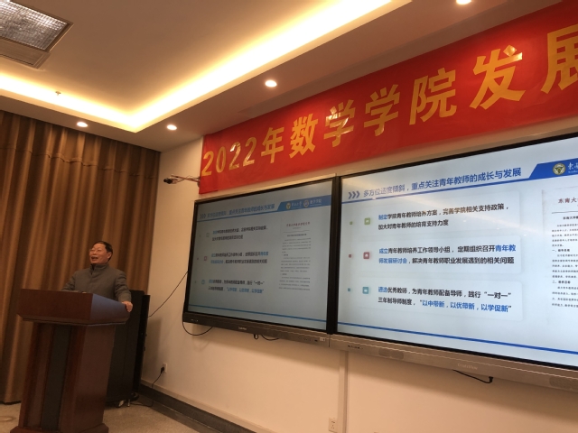 1月10日,数学学院召开2022年发展研讨会,学院党政班子成员、各系、中心主任、副主任、各党支部书记、全体教授、博士生导师、青年教师代表、机关代表等五十余人参加了会议,会议由党委书记吴映红主持。