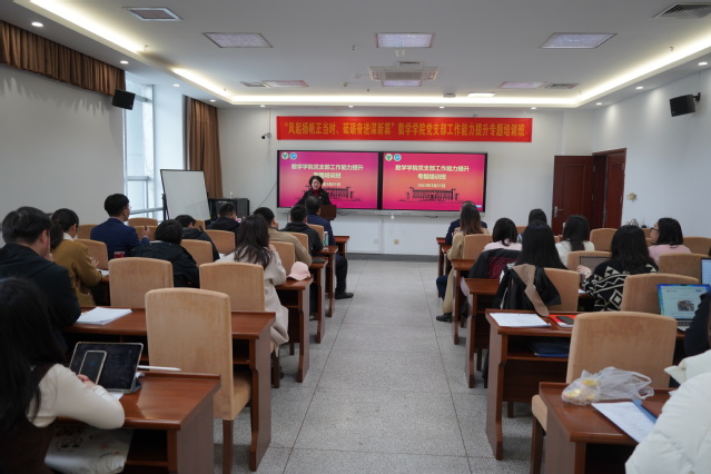 培训班首先由冯建明主任作了题为《决胜攻坚期,踔厉开新局》的主题报告。冯主任的报告围绕党的二十大精神关于“教育、科技、人才三位一体”的内容展开,随后对学校第十五次党代会报告精神进行解读并结合数学学院的工作特点,对学院的发展提了目标,对参会的教师、学生党员干部提出了希望,并要求大家紧紧围绕学生是中心、教师是根本、干部是关键、人人是目的的发展思想,巩固强优精特、提升新兴、强化交叉的学科布局,建设更加宜居、宜学、宜业的美好东大。