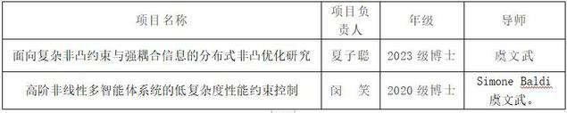 近日,国家自然科学基金委员会公布了2023年度国家自然科学基金青年学生基础研究项目(博士研究生)立项名单。东南大学数学学院博士研究生夏子聪、闵笑的申报项目成功获批。夏子聪同学导师为东南大学数学学院院长虞文武教授,闵笑同学导师为东南大学数学学院simone baldi教授和东南大学数学学院院长虞文武教授。