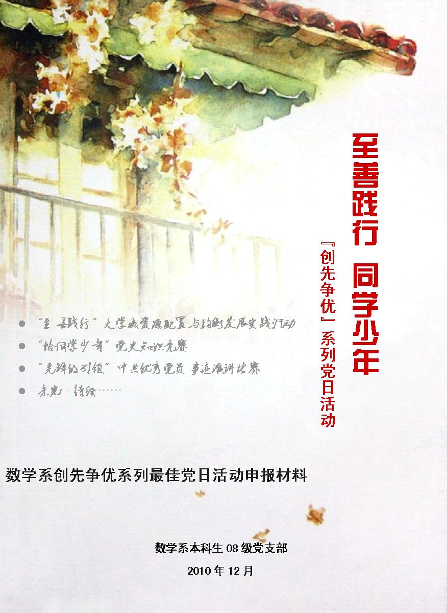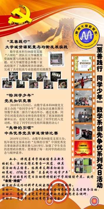 数学系08级本科生党支部“至善践行,同学少年”创先争优系列党日活动喜获东南大学最佳党日活动一等奖-凯发平台登录