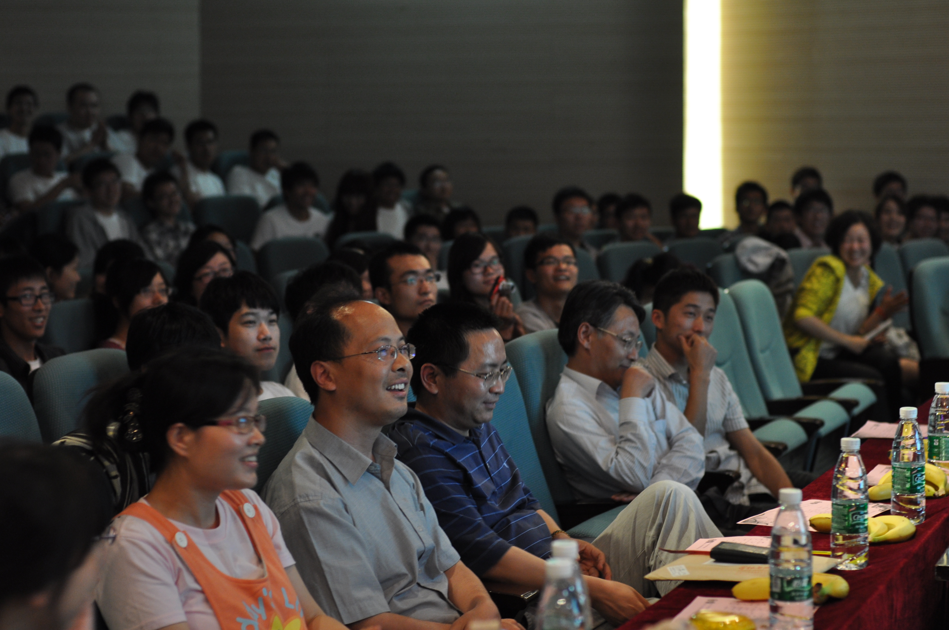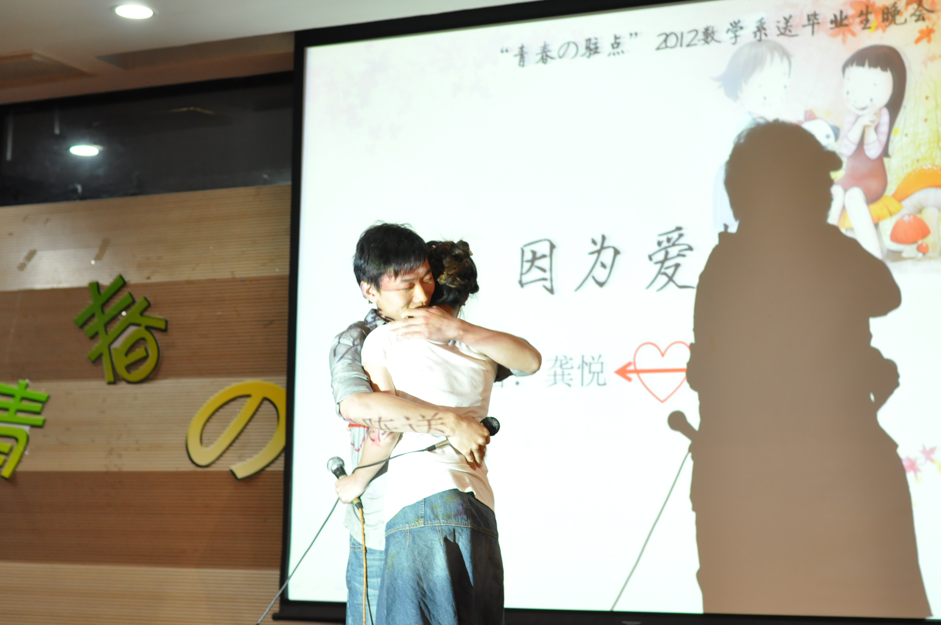 | 2012年5月22日19时, 数学系“青春の驻点”欢送2012届毕业生文艺晚会在焦廷标馆一楼圆形报告厅隆重上演并取得了圆满成功。数学系党委书记李涛老师、系主任刘继军老师、副主任薛星美老师,以及各兄弟院系的团委书记、辅导员老师们出席了本场欢送晚会。 晚会由一曲火辣的现代舞拉开序幕,之后有优美的歌曲独唱,甜蜜的双人对唱,深情又不乏幽默的朗诵等十多个节目。其中,大一大二合作带来的简短又让人捧腹的话剧《有雷无雨》和毕业生兼主持人的孙旭峥学长带来的的相声《本科特长生》台词精致,调动了整场晚会的气氛。晚会中主持人现场邀请了许多大四同学、领导和老师参与了互动环节,其中包括“你来比划我来猜”和“传递洋葱圈”的游戏。系团委书记袁煜昶老师和学办主任张涌老师的一曲《老鼠爱大米》深情对唱,令人捧腹,更把晚会推向高潮。同时另一边的人人墙上也是妙语连珠,为晚会增光添彩,活跃现场气氛。 毕业生两个班级的视频记录着2008级大学四年的笑脸和弥足珍贵的回忆,幽默搞笑又充满了温情与感动。最后,晚会在2008级全体毕业生上台齐唱《朋友》声中结束,他们一起欢呼,拥抱彼此,久久不愿离去。 毕业,留不住的是脚步,带不走的是校园情怀;毕业,忘不掉的是兄弟,放不下的感情。数学系“青春の驻点”欢送2012届毕业生晚会,取得了圆满成功,既凝聚了本届毕业生对东大对数学系浓浓的爱校爱系情怀,更集聚了学弟学妹对即将离校的学长学姐们的真诚深厚的祝福,祝他们前程似锦,一路顺风,早日实现自己的理想!  |