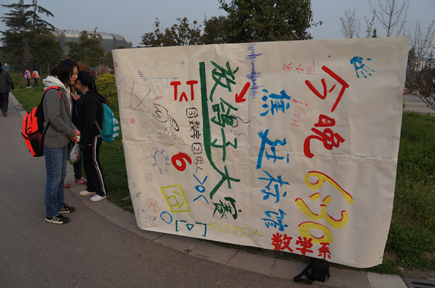 |        正值2013年4月1日“愚人节”到来之际,为缓解同学们的紧张学习压力,活跃校园气氛,数学系团委主办、学生会承办的“愚人节”整蛊活动在九龙湖校区取得了圆满成功。 4月1日早上6点50分,同学们在梅园跑操路线的终点处,安排了一个“破墙而出”的恶作剧,给当天跑操的同学们都带去了一份惊喜。我们拉出了“今晚6:30 焦廷标馆放鸽子大赛”的倒字海报,引来不少同学驻足围观,由于我们刻意把海报放横了,所以经过的同学们都不得不歪脖看海报,形成了特别的围观人群。就在跑操终点人群聚集得越来越多时,躲在海报背后,戴着搞笑面具的工作人员从海报后一跃而出,跳到人群中央,着实把大家吓了一跳。然后戴着面具的同学来到人群中给围观同学分发糖果,给大家带去了愚人节的别样祝福,换来一片叫好声。 同日中午下课后,同学们再次聚焦在梅园食堂门口开展了“集体望天”的两项愚人节活动。大家先围成一群作仰望天空状,由于我们的“全神贯注”,吸引了不少同学顺着我们眼神的方向望向天空,当意识到自己被整蛊之后,我们便派出同学送上小礼品,并祝其愚人节快乐。 活动取得了圆满成功,丰富了同学们课外生活,调节了校园紧张学习气氛,同时也为增进同学之间感情搭建了桥梁。那一张张笑脸,一次次恶作剧,一份份精美礼品,传递的都是同学们的情谊。愚人节,愚人却不愚弄感情,活动虽小,传递的是我们想为校园的这个春天增添一丝活力的心意。(数学系学生会供稿)  |