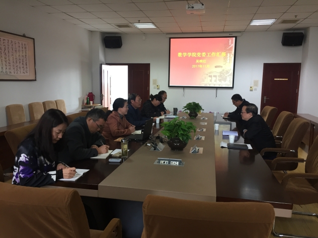 学院党委书记吴映红首先从十九大专题学习、“两学一做”常态化制度化建设、“双抓双促”大走访活动、巡视整改工作、党风廉政建设、学生思想政治工作等方面全面介绍了学院党委今年的工作进展,并介绍了学院党政密切配合,在系级架构调整、平台建设、学科建设、师资队伍建设等方面推动学院发展的情况,同时还就目前学院发展存在的问题和解决思路与办法做了汇报,特别是促进我院学科平衡发展,高端师资的引进,数学学科发展等方面工作,并希望学校对我院“江苏省网络群体智能重点实验室”的建设等方面给予进一步的支持。院长曹进德教授就进一步协调好教学和科研的关系,不断发挥数学学科的交叉优势,为我校其他学科的建设作支撑等方面工作作了汇报,其他班子就分管的工作作了补充汇报。