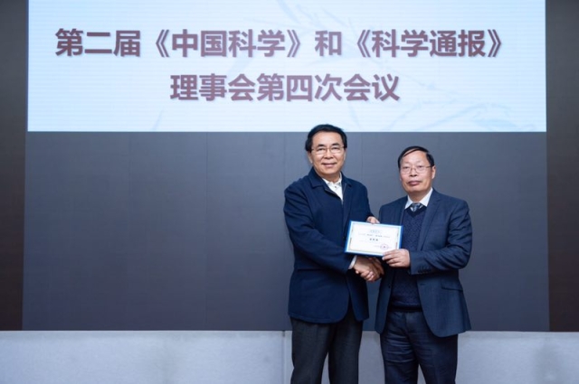 2018年10月29日上午,在《中国科学》《科学通报》(以下简称“两刊”)第二届理事会第四次会议上,中国科学院副院长丁仲礼院士宣布了“两刊”2018年度优秀作者、优秀编委和优秀编辑名单,中国科学院院长、学部主席团执行主席、“两刊”理事会理事长白春礼院士为获奖者颁发了证书。“两刊”优秀作者和优秀编委由各辑编委会推荐,原则上每个编委会评选1名优秀作者和1名优秀编委,经总主编同意后,报理事会批准。2018年度,共产生了优秀作者10人、优秀编委10人和优秀编辑2人,其中6位为中国科学院院士。东南大学数学学院曹进德教授荣获《中国科学》《科学通报》两刊2018年度优秀作者表彰。