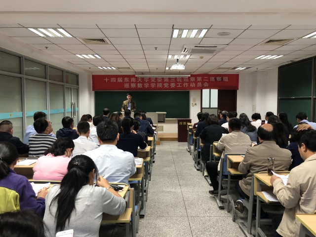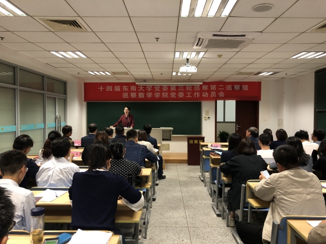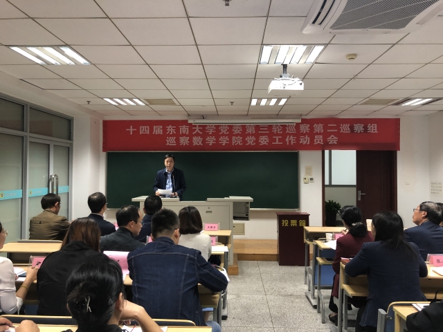 最后,数学学院党委书记吴映红代表学院作表态发言。吴书记指出,开展巡察工作,是全面贯彻落实党的十九大精神、强化基层党内监督,全面从严治党向基层延伸、向纵深发展的重大举措,也是校党委按照中央要求,聚焦全面从严治党,为加快建设“双一流”大学提供坚强政治保障的重要部署。十四届东南大学党委第三轮巡察第二巡察组来我院开展巡察工作,充分体现了学校党委对我院的高度重视和关心,学院党委将切实提高政治站位,坚决贯彻巡察工作部署,严守纪律,全力配合巡察组开展工作,从严从实,抓好巡察整改落实,为推动数学学院发展提供坚强的政治保障和组织保障。