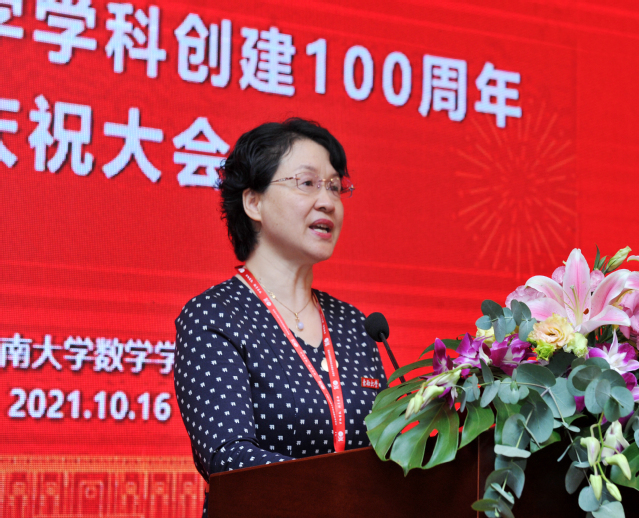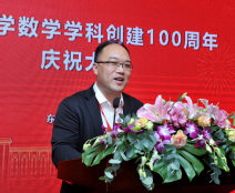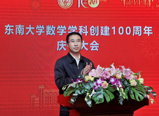 庆祝大会在庄严的国歌声中拉开序幕。张广军校长代表东南大学向东大数学学科创建100周年表示热烈祝贺。他说,东南大学的数学学科历史悠久、特色鲜明。1921年,著名数学家熊庆来先生从欧洲学成回国创办了国立东南大学算学系。1952年院系调整后,历经了基础课系、基础科学系、数学力学系、应用数学系和数学系的发展,并于2017年建成数学学院。历经百年,数学学科赓续历史、担当使命,在人才培养、科学研究、社会服务以及文化传承创新上锐意进取、接续奋斗,培养了一大批在国内外科学研究、行业创业等领域表现突出的杰出人才,形成了教学科研并重、多学科交叉融合的办学格局。目前,数学学科是学校“优势理科”建设和发展的重要组成部分。数学学科站在新百年征程的新起点上,重任在肩、未来可期,他希望数学学科传承历史、瞄准未来,深化内涵、追求卓越,彰显特色、面向国际,希望数学学科的广大师生和校友接过百年薪火相传的火炬,沿着崭新的前进方向,凝心聚力、开拓创新,为谱写数学学科新的辉煌篇章,为东南大学早日建成中国特色世界一流大学作出新的更大贡献!