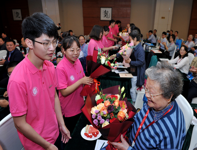 接着,在校生代表向到场的21位退休教师代表献花致礼,衷心感谢他们为数学学院建设和发展做出的贡献。