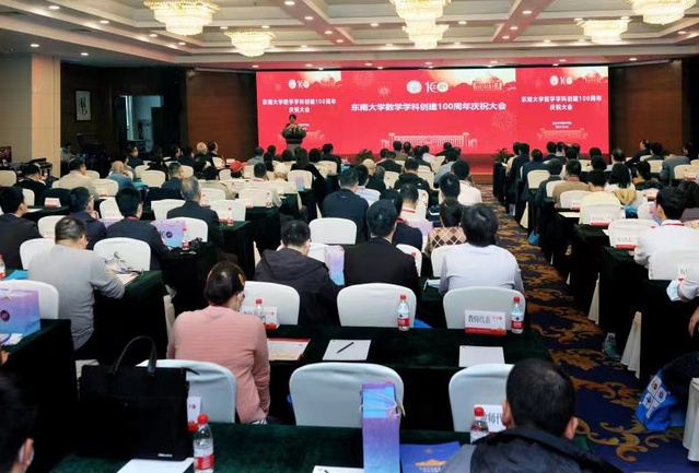 10月16日上午,东南大学数学学科创建100周年庆祝大会在九龙湖宾馆举行。校长张广军,中科院院士、教育部高等学校数学类专业教指委主任、北京航空航天大学郑志明,党委副书记郑家茂,原江苏省政协副主席、南京大学副校长程崇庆,学校相关部门、院系负责同志,省内外十多家数学学科兄弟院系领导以及数学学院全体领导班子成员、退休教师代表、在校师生代表、校友代表及各界来宾300余人参加了庆祝大会。大会由数学学院党委书记吴映红主持。