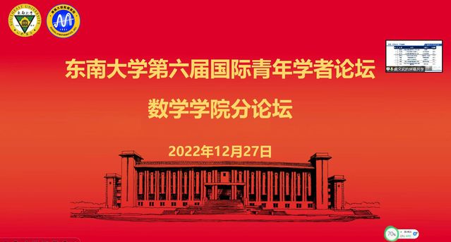 12月27日,东南大学第六届国际青年学者论坛数学学院分论坛成功举办。本次论坛旨在为海内外青年学者搭建一个学术交流和聚贤纳才的平台,推进学术创新、学科交叉和人才引进计划,共同推动东南大学的“双一流”建设和数学学院的一流学科建设。论坛由虞文武副院长主持,数学学院党委书记吴映红、院长曹进德等全体党政班子成员、各系主任、党支部书记、学院人才工作组成员和来自密歇根大学安娜堡分校、匹兹堡大学、西澳大学、清华大学等6位海内外的优秀青年学者出席了论坛。