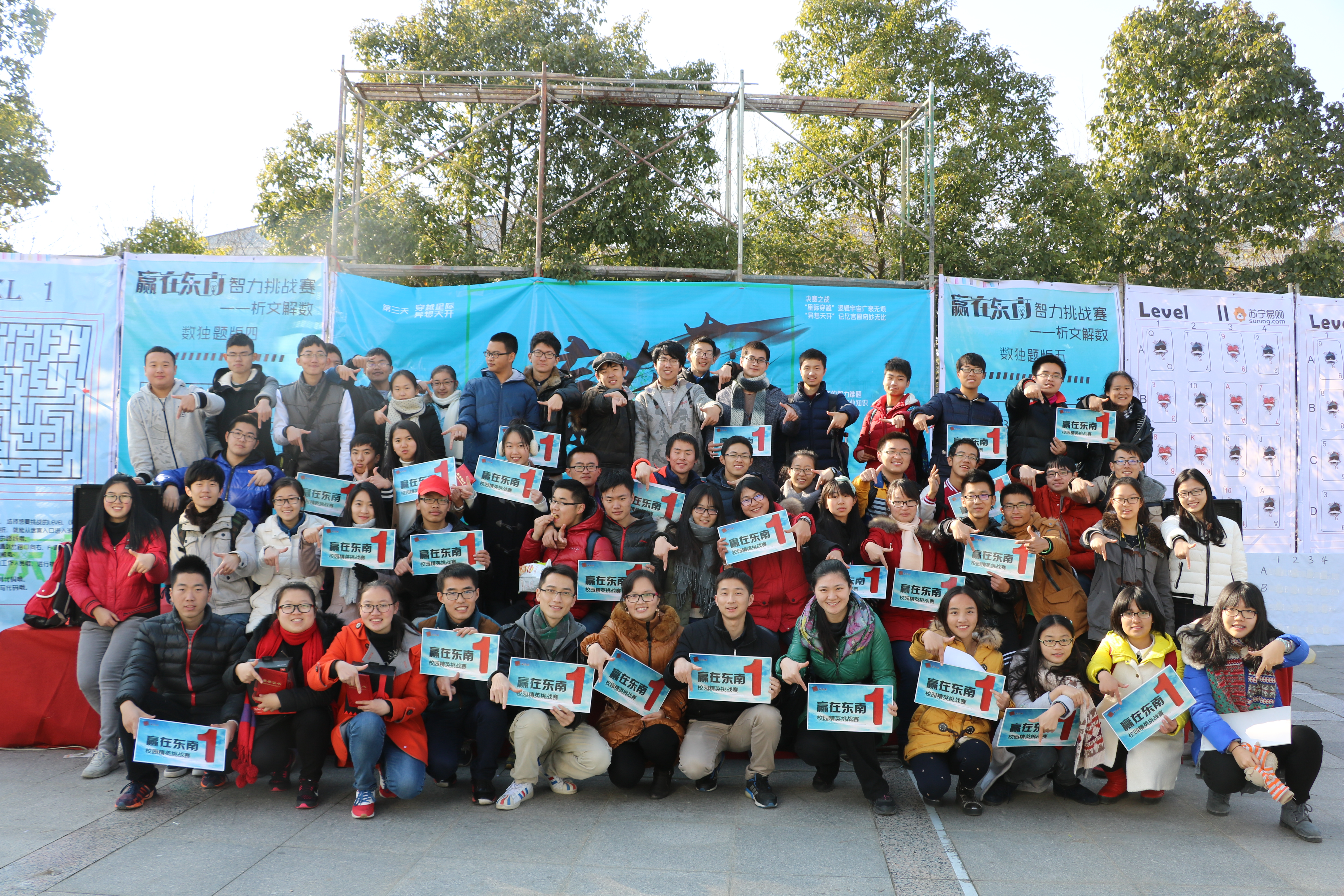 12月18日,由东南大学校团委主办,数学系团委、数学系学生会承办的第七届“赢在东南”校园智力挑战赛在大活广场圆满落幕!挑战赛于12月16日正式来开帷幕,数学系党委书记吴映红老师、校团委副书记张璐老师、数学系党委副书记曹海燕老师、系团委书记袁煜昶老师和班主任陈和老师出席开幕式,并由数学系党委书记吴映红老师宣布开幕。历经三天的角逐,从40支参赛队伍中成功突围8组选手,进入决赛。在激烈的比拼和无限悬念的积分排名争夺后,一支来自数学系大三和大一年级的团队最终拔得头筹。