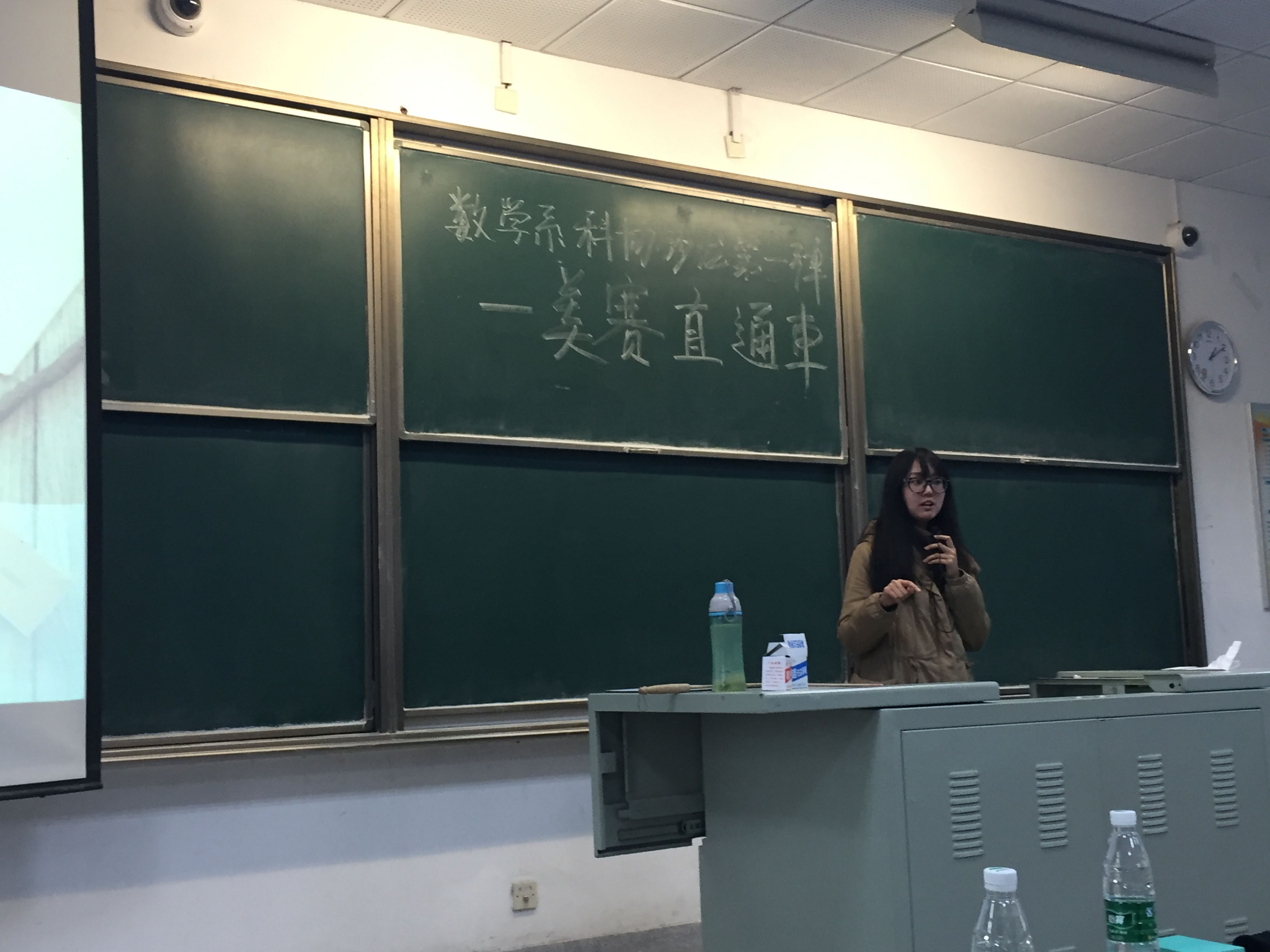 2015年12月23日中午,由数学系科技协会主办的沙龙第一弹――美赛直通车在教六-101成功举行,此次沙龙我们邀请到了在上届数模美赛中取得了优异成绩的学长和学姐们,为我们分享他们在比赛中的经验。