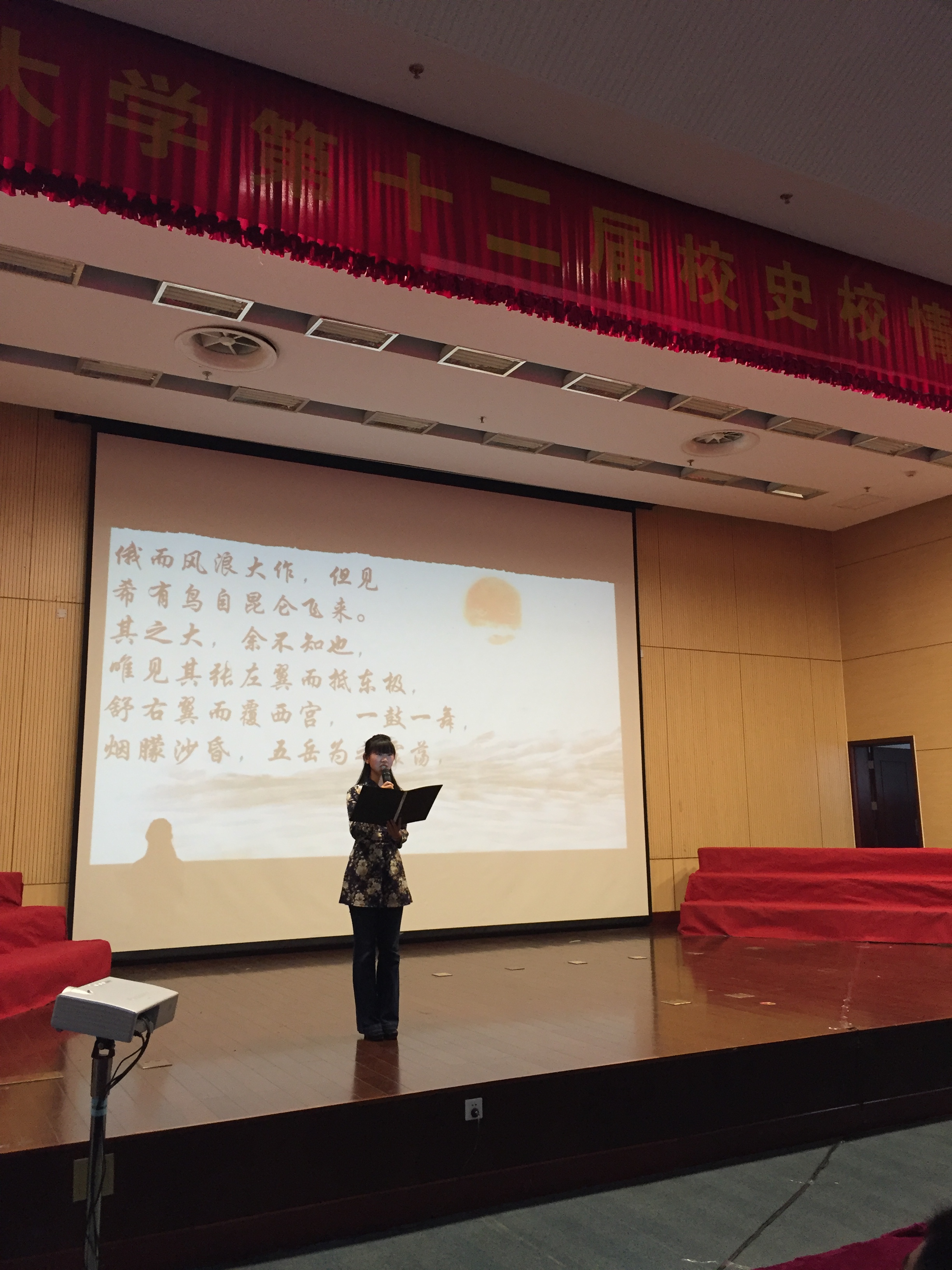 随着时间的推移,精彩的演讲环节到了。我们数学系派出刘安琪同学,一篇自创的文言《大鹏说》,配以古朴轻幽的古琴曲,惊艳全场!我东大之学子,亦如今日之大鹏。鲲鹏展翅自兹始,止于至善东大魂。在演讲最后,我们数学系学子与刘安琪同学共同呼喊出内心的梦想,振奋人心!