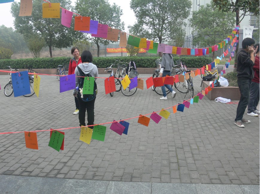 2011年11月18日中午,由数学系主办,数学系070102团支部承办“张扬大学生个性,弘扬校园文化”的在东南大学九龙湖校区梅园食堂门口展开。